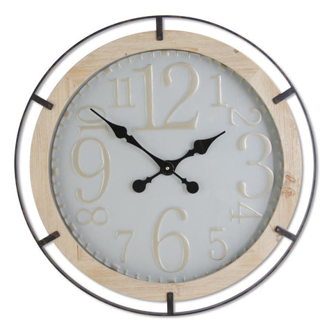 33 Inch Corrugated Metal Wall Clock w/Wood Trim