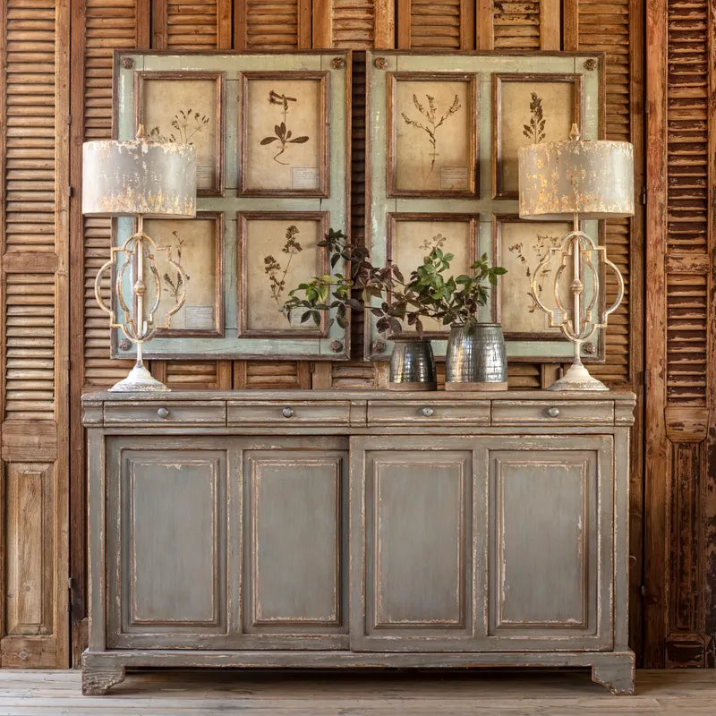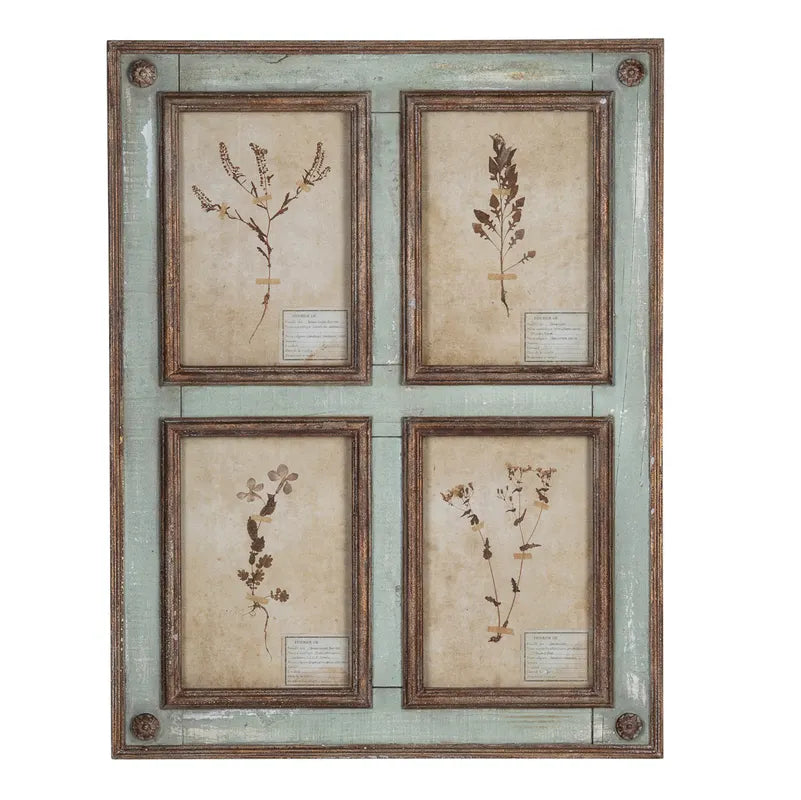 This collection of botanical prints is grouped on a pair of beautifully painted frames with gold accents. The photo realistic pressed botanicals have to be seen to be believed!
