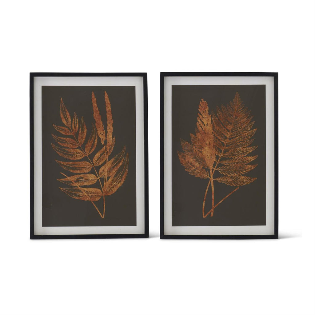 Elevate your space with this set of two striking 27.5-inch framed prints, featuring vibrant orange ferns against a sleek black background. The black wood frames add a sophisticated touch, making these botanical artworks a perfect statement piece for any room. Their bold contrast and natural theme bring warmth and style, effortlessly enhancing your décor with a modern rustic charm. 27.5H x 19.5W x 1D