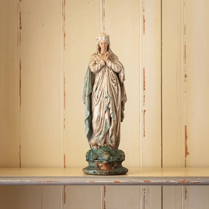 This Holy Mary Statue was inspired by European antiquities with an aged finish to retain the old-world appeal. 3.94 x 3.94 x 12 (in)