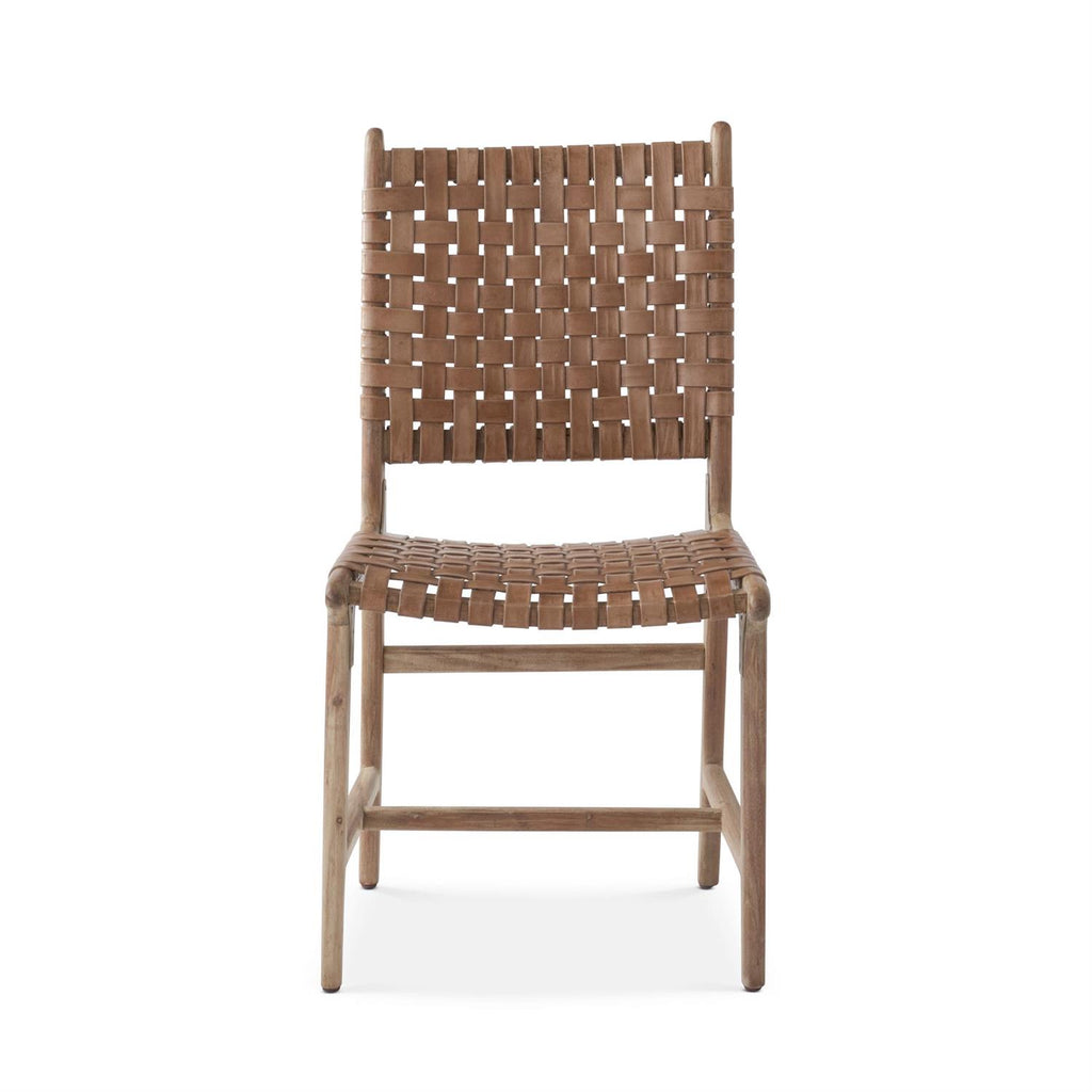 Experience timeless elegance with this 38.25-inch handcrafted dining chair, featuring woven tan buffalo leather and rich acacia wood. Its sturdy construction ensures lasting comfort and durability, while the natural materials add warmth and rustic charm to your dining space. Perfect for elevating any meal with style and sophistication. 38.25H x 20W x 23D. Buffalo Leather.