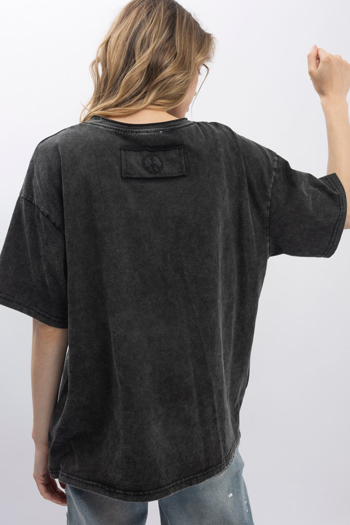 RELAXED FIT SIDE POCKETS ROUND NECK MINERAL WASHED