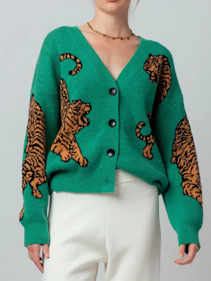 Tiger Jacquard Knit Sweater Cardigan