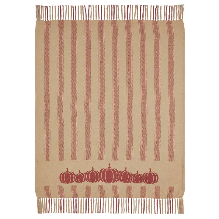 Harvest Blessings Pumpkin Patch Ticking Stripe Woven Throw 50x60