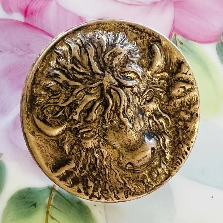 Brass patina Buffalo Hat Pin measures about 1 1/2” tall Pin back for easy placement